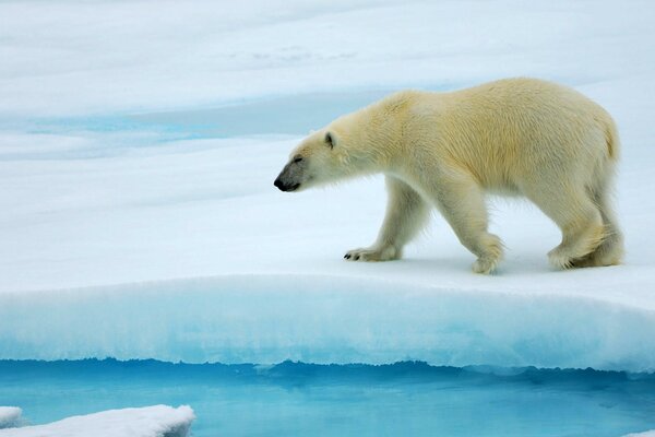 Medver blanco en invierno cerca del agua