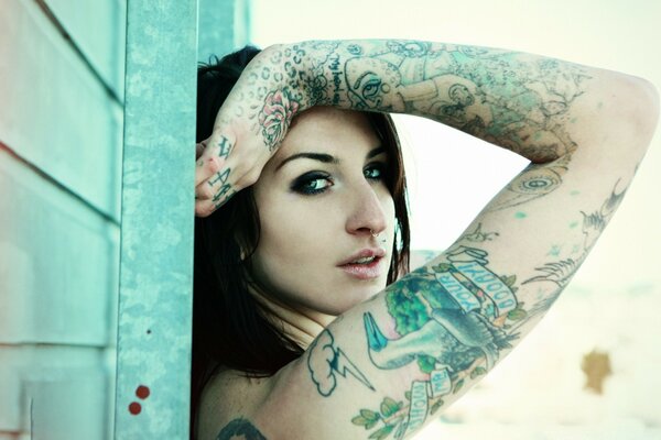 Chica con tatuajes posa bien