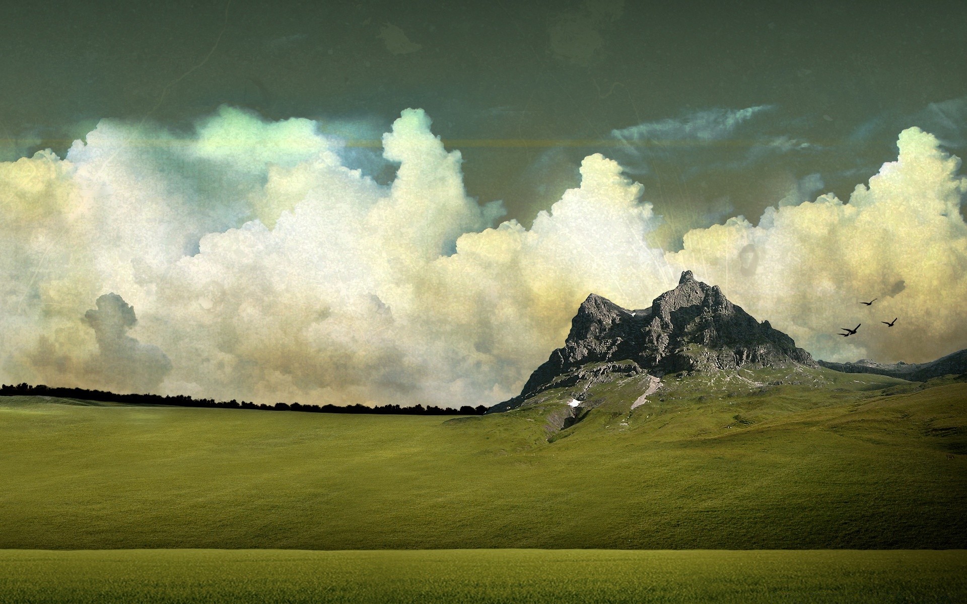 Densas nubes cerca de las montañas y el campo - fondos de Escritorio