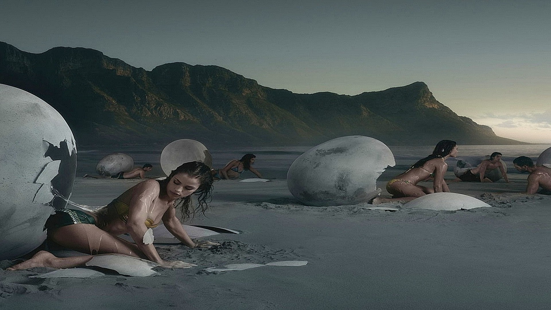 La gente en la playa eclosiona de enormes huevos - fondos de pantalla