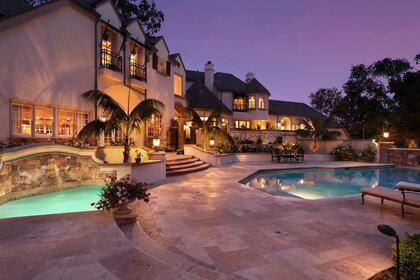 Elegante vista de la finca con piscina