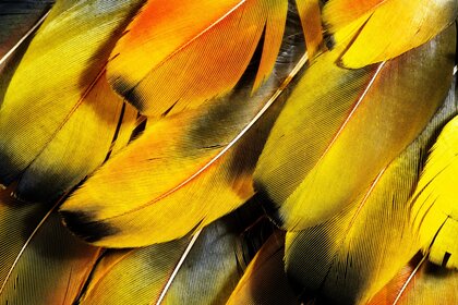 Plumas amarillas y verdes brillantes