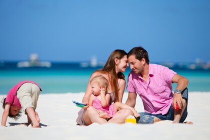 Familia feliz en el mar
