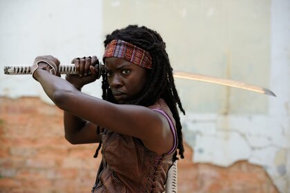 Chica negra con una espada en la mano