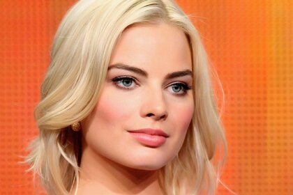 Sonriente Margot Robbie con hermosos ojos