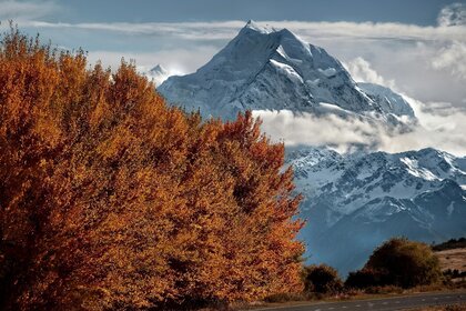 Paisaje de otoño con vistas a la montaña