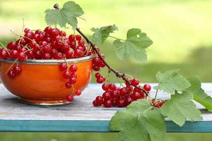Ramita de grosella roja en el cuenco
