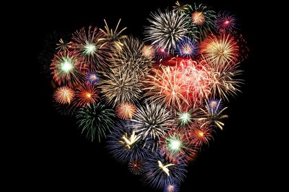 Fuegos artificiales festivos en forma de corazón