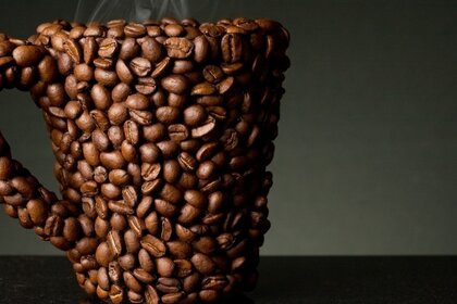 Taza pegada de los granos de café