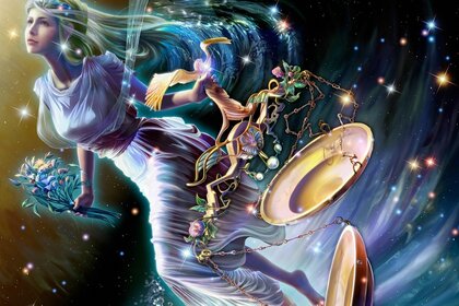 Ilustración con la imagen de una niña en el fondo del cielo estrelladoIlustración con la imagen de una niña en el fondo del cielo estrellado