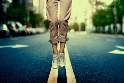 Calles de las ciudades del mundo. chica en la gravedadCalles de las ciudades del mundo. Chica en la gravedad