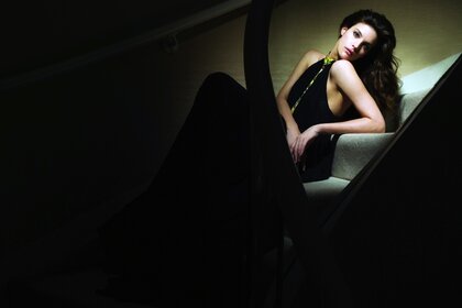 Una mujer en las escaleras. mujer de moda. hermosa chica. cabellos largosUna mujer en las escaleras. Mujer de moda. Hermosa chica. Cabellos largos