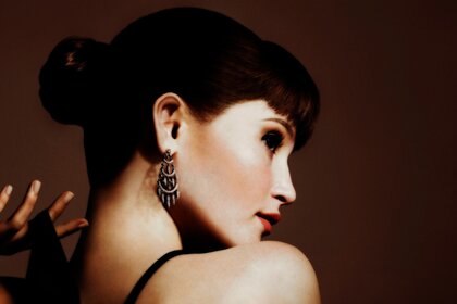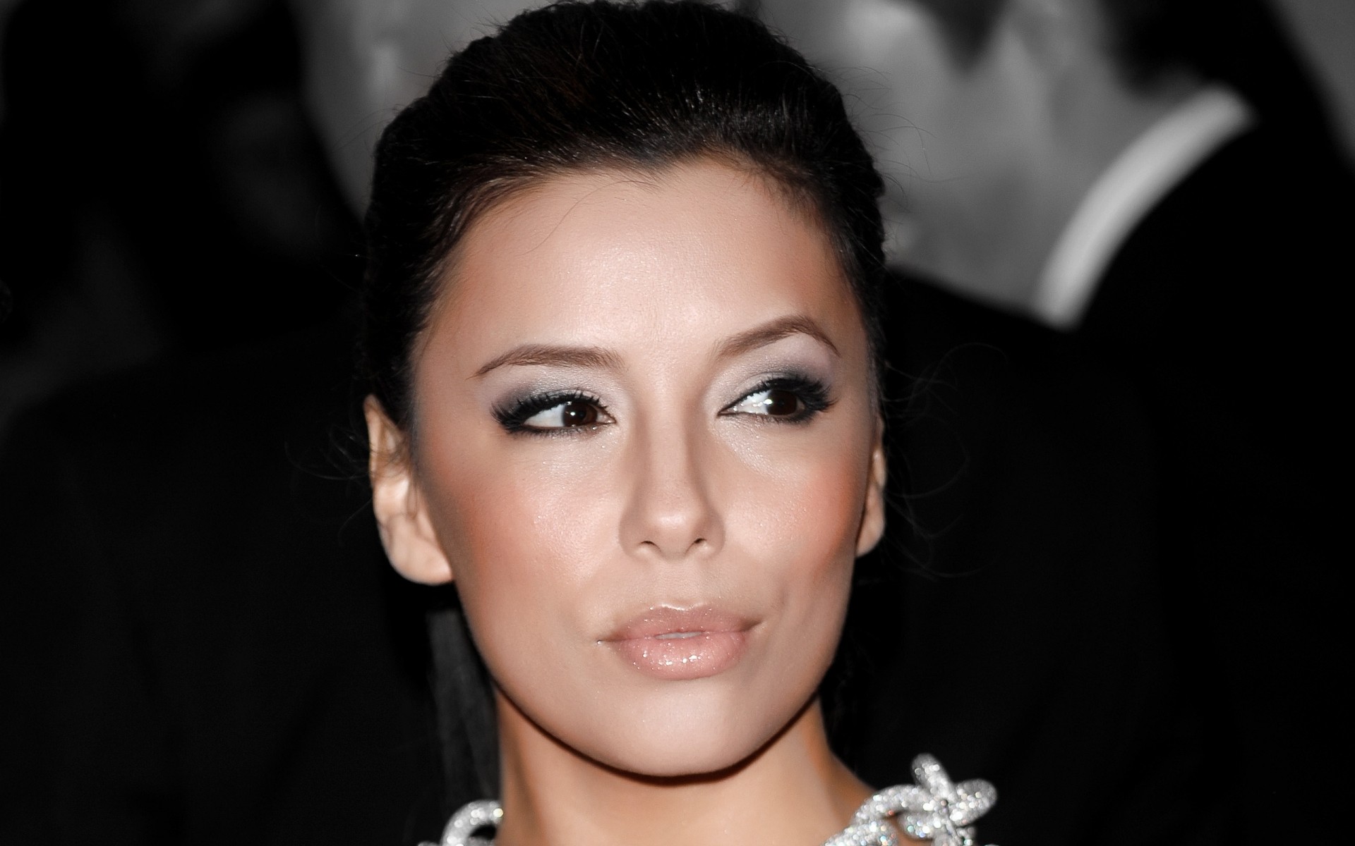 Mujer con collar en el cuello mirando hacia otro ladoMujer con collar en el cuello mirando hacia otro lado