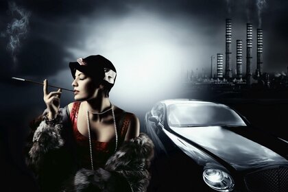 La dama en el fondo de la máquina y las pipas de fábrica Fuma