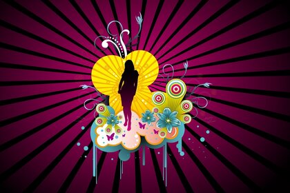 Diseño vectorial, silueta femenina con mariposas