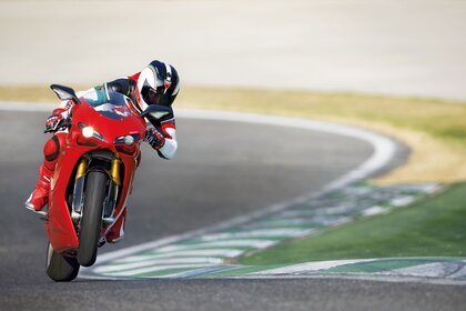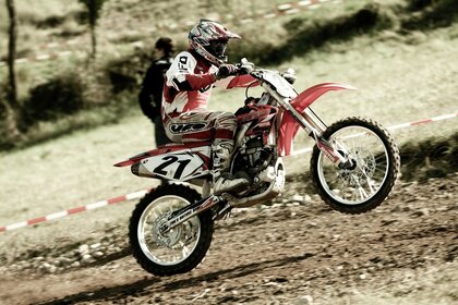 Motorista en la rueda trasera en movimiento