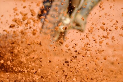 Salpicaduras de arena de las ruedas de la bicicleta