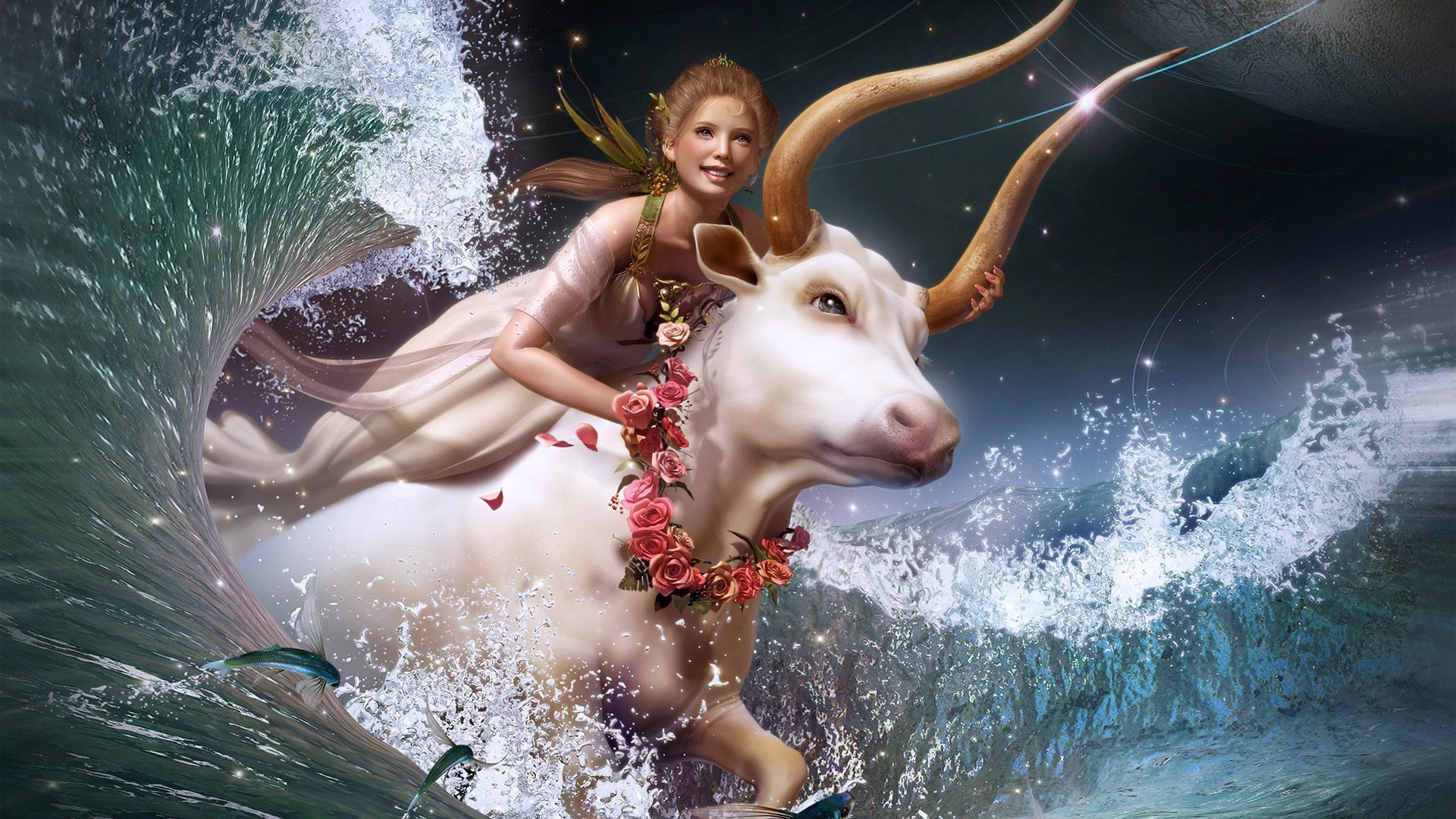 Chica en el agua montando un Toro - fondos de pantalla