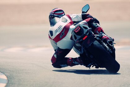 Motociclista entra en una curva cerrada