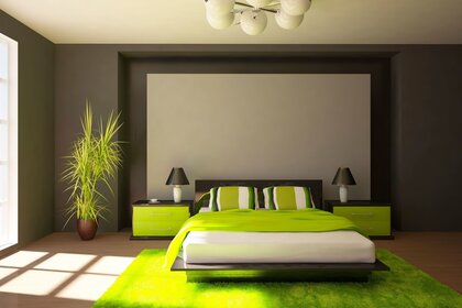 Dormitorio moderno en tonos verdes