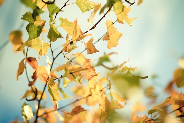 Hojas amarillas de otoño en una rama de árbol