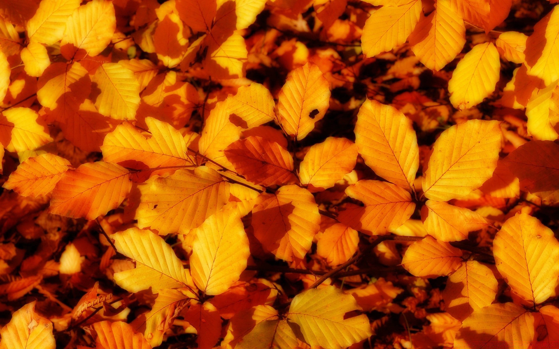 Hojas cálidas de otoño en el piso - fondos de pantalla