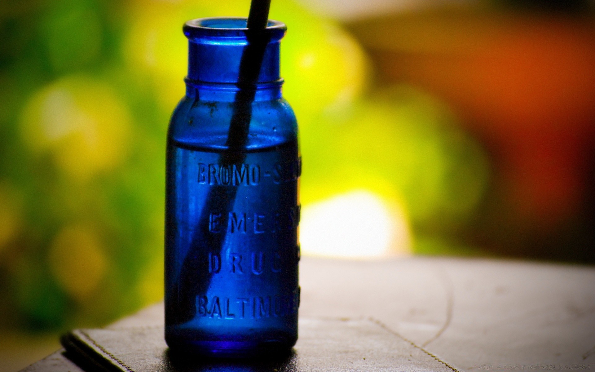 Frasco azul sobre fondo borroso - fondos de Escritorio