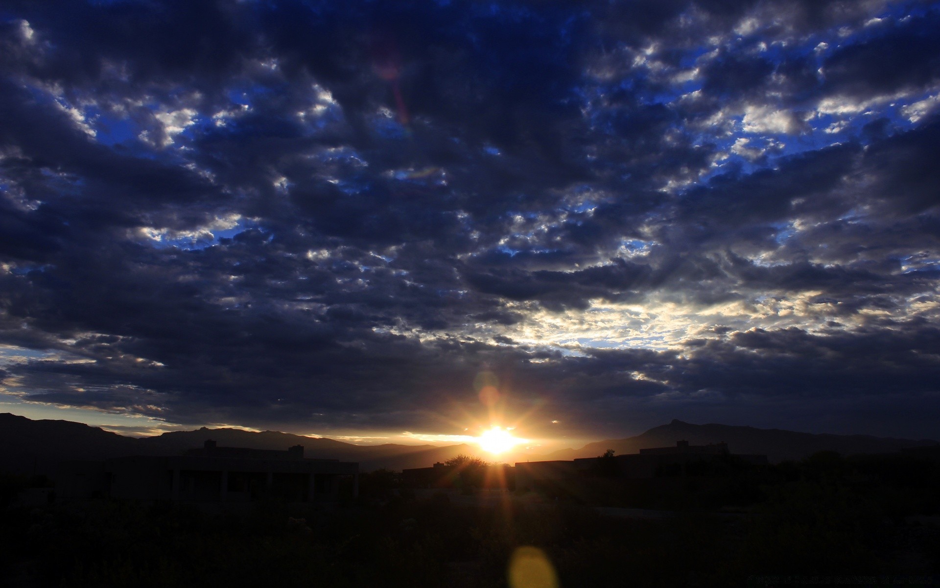 Paisaje en América en el desierto, el atardecer y el amanecer se cruzan al mismo tiempo