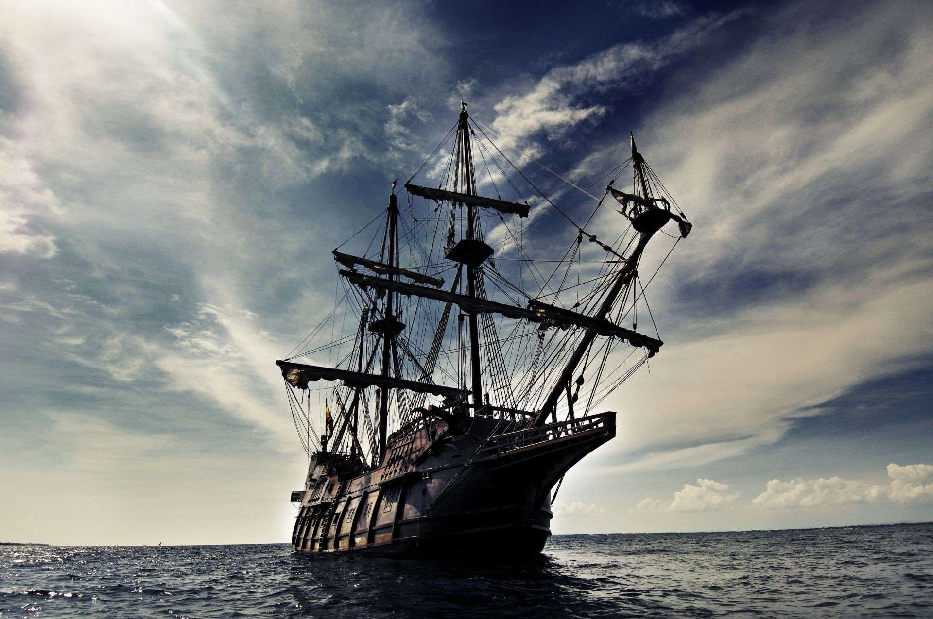 Un gran velero en un mar burbujeante y una gran Luna ilumina su camino