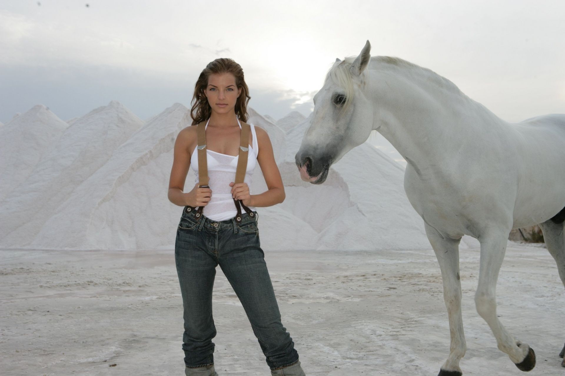 Chica en blanco con una bolsa blanca sentada en las rocas
