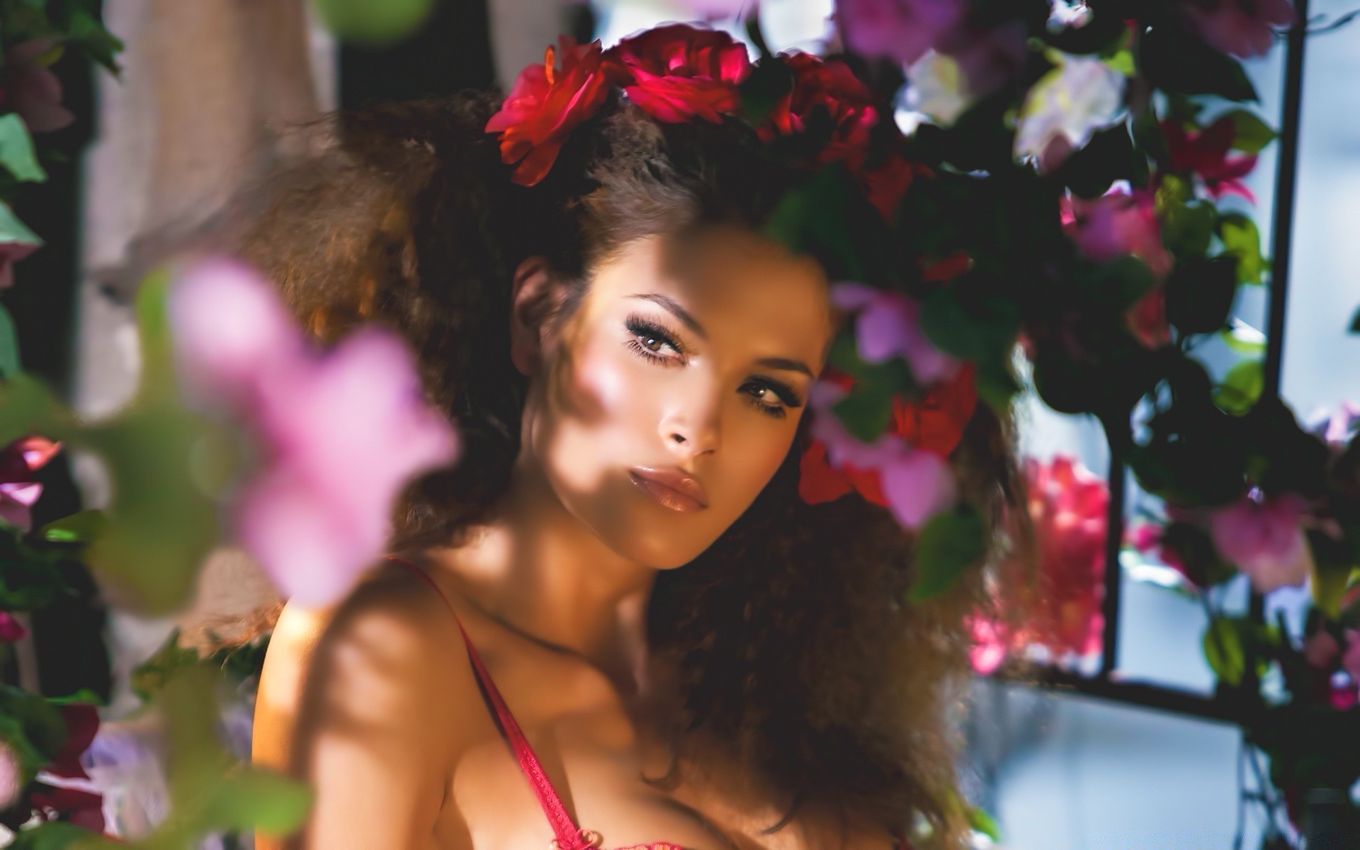 Chica con vestido rojo y zapatos rojos yace en la cama