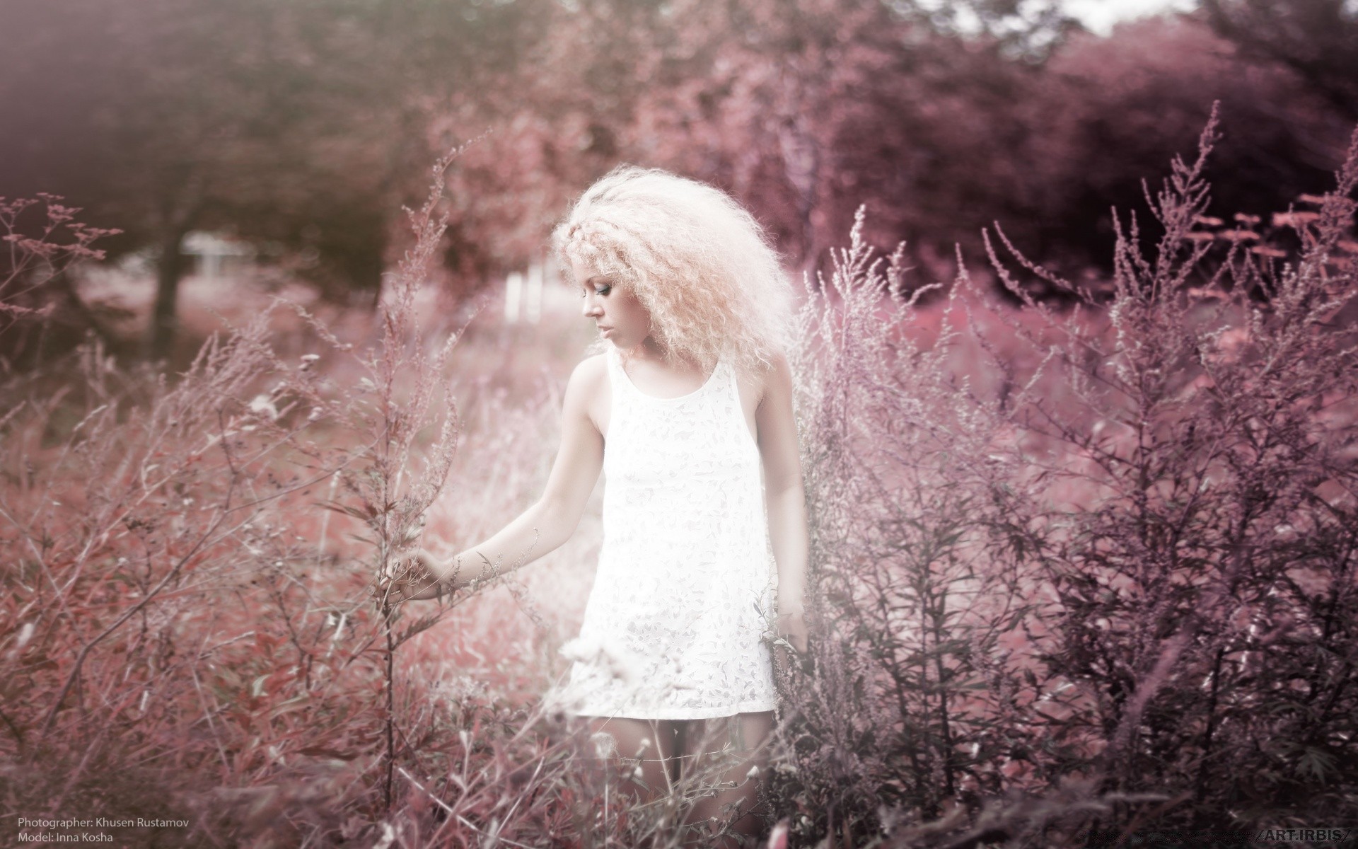 Una chica con una bicicleta sostiene un pañuelo sobre su cabeza en el viento