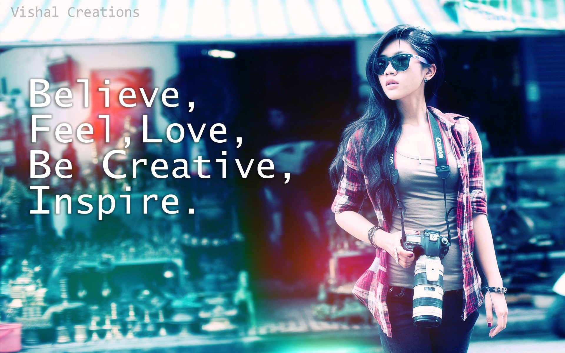 Letras en Inglés, chica con cámara
