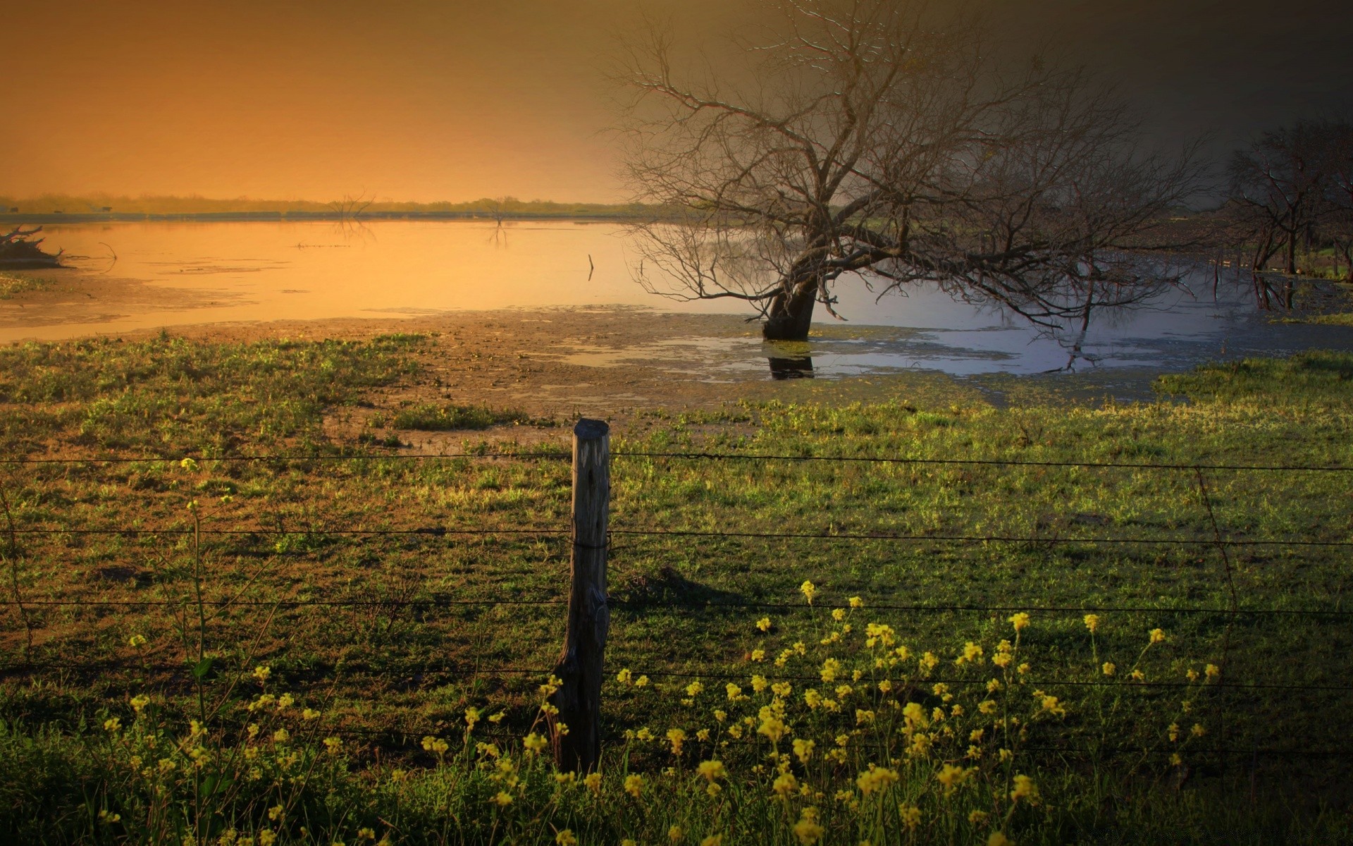 Hermosa puesta de sol en la naturaleza. Amplio campo al atardecer