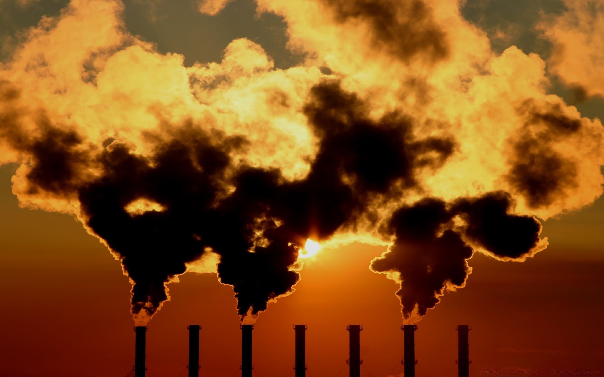 Cielo al atardecer en humo