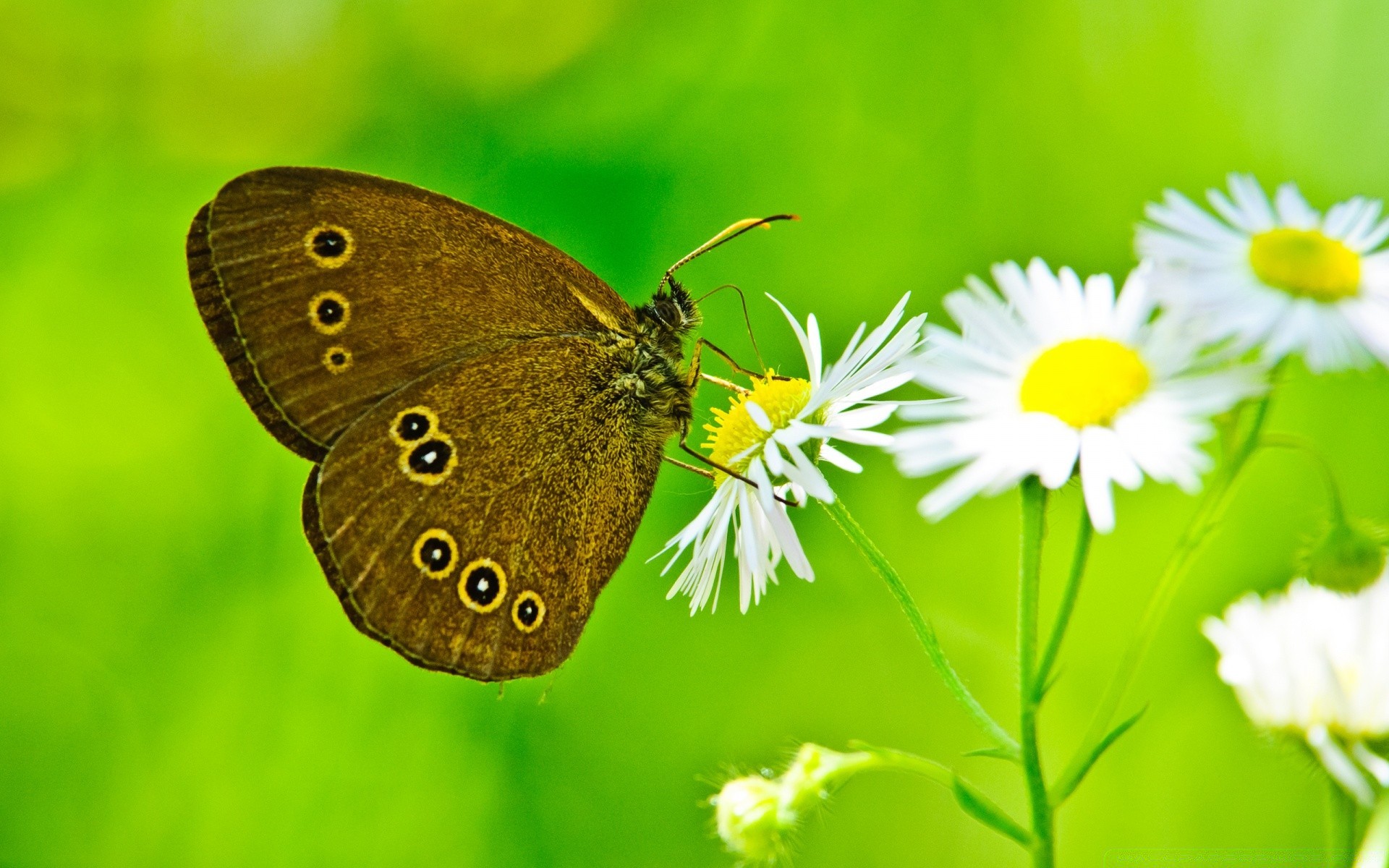 Margaritas y mariposas en verano en la naturaleza