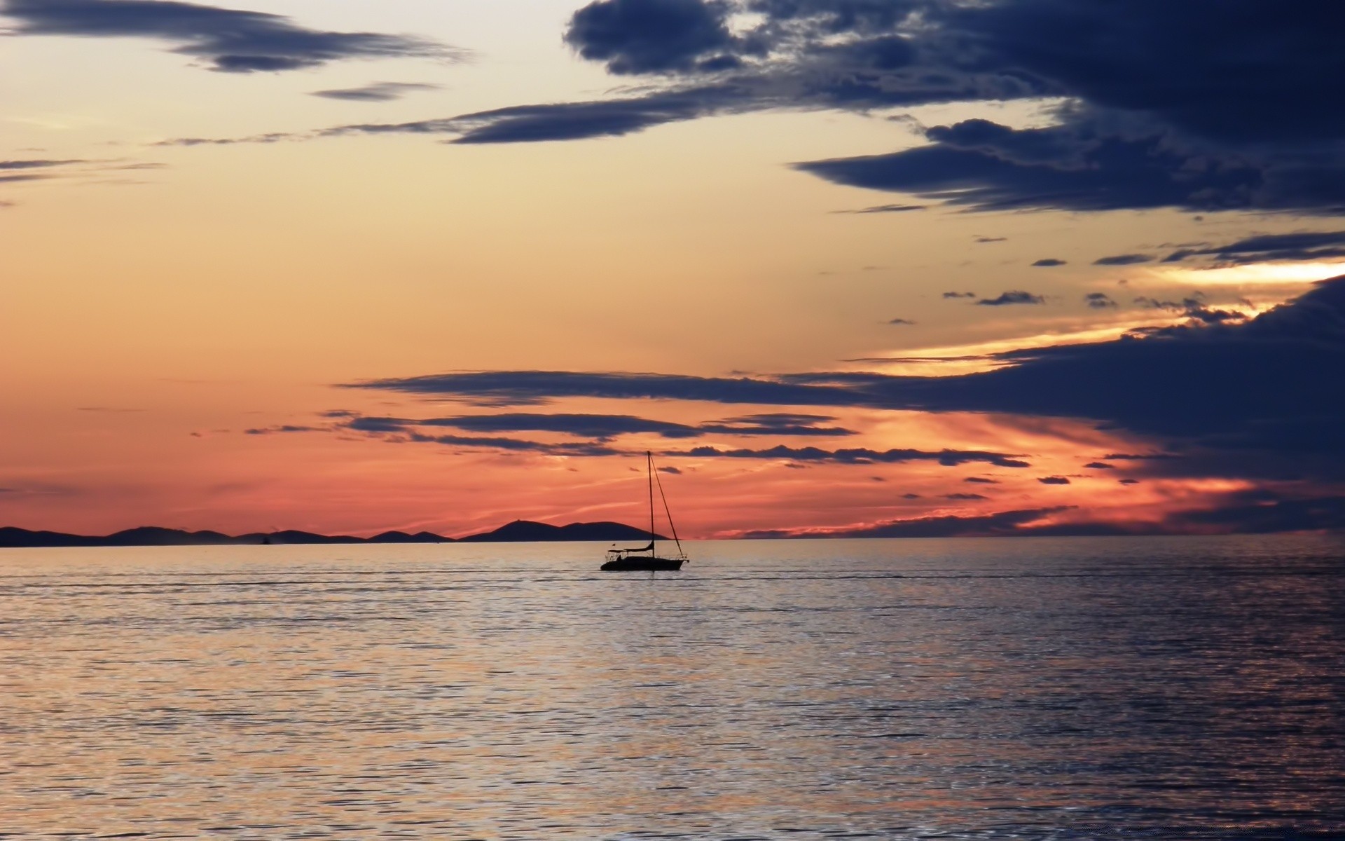 Cielo al atardecer sobre el muelle con reflejo en el agua