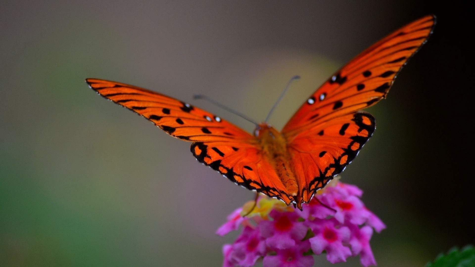 Hermosa mariposa con flores de color rosa