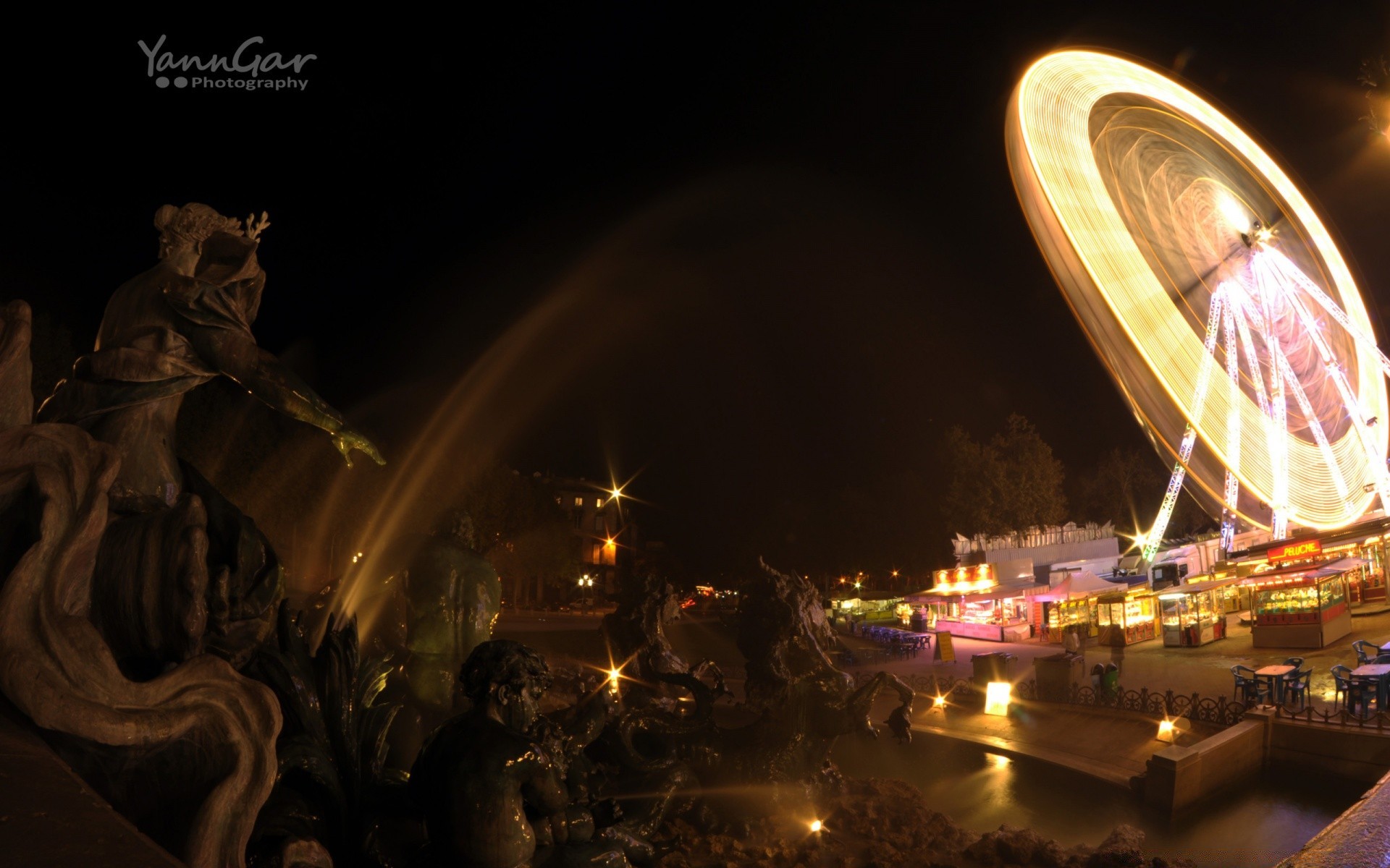 Un coche BMW azul viaja por la carretera en medio de la ciudad de la noche
