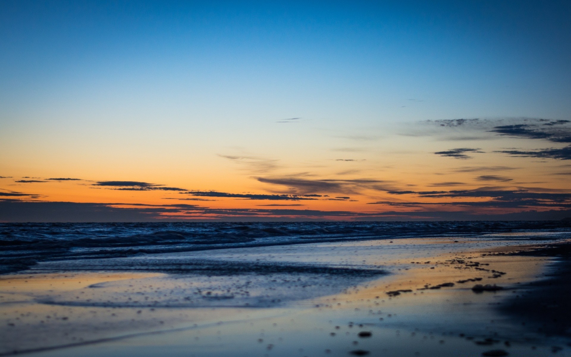 Castillo en llamas en la distancia sobre la costa del mar por la noche