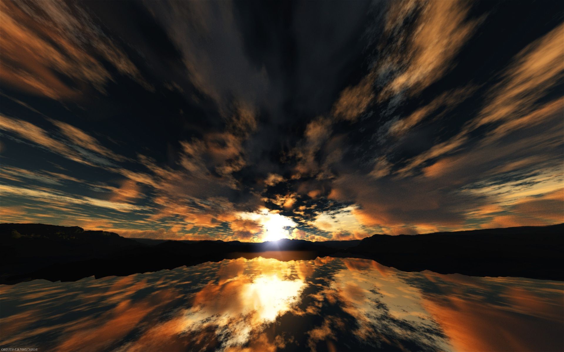 Paisaje nocturno: montañas iluminadas por la luz de la noche y lago