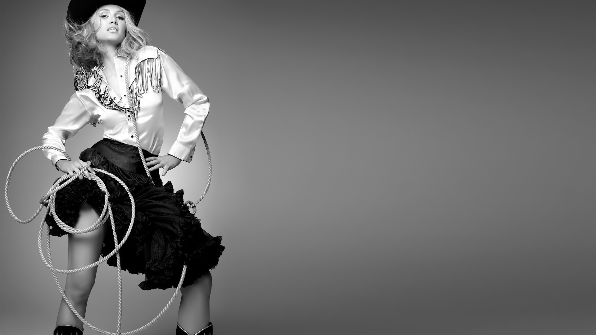 Retrato en blanco y negro de una mujer con un látigoRetrato en blanco y negro de una mujer con un látigo