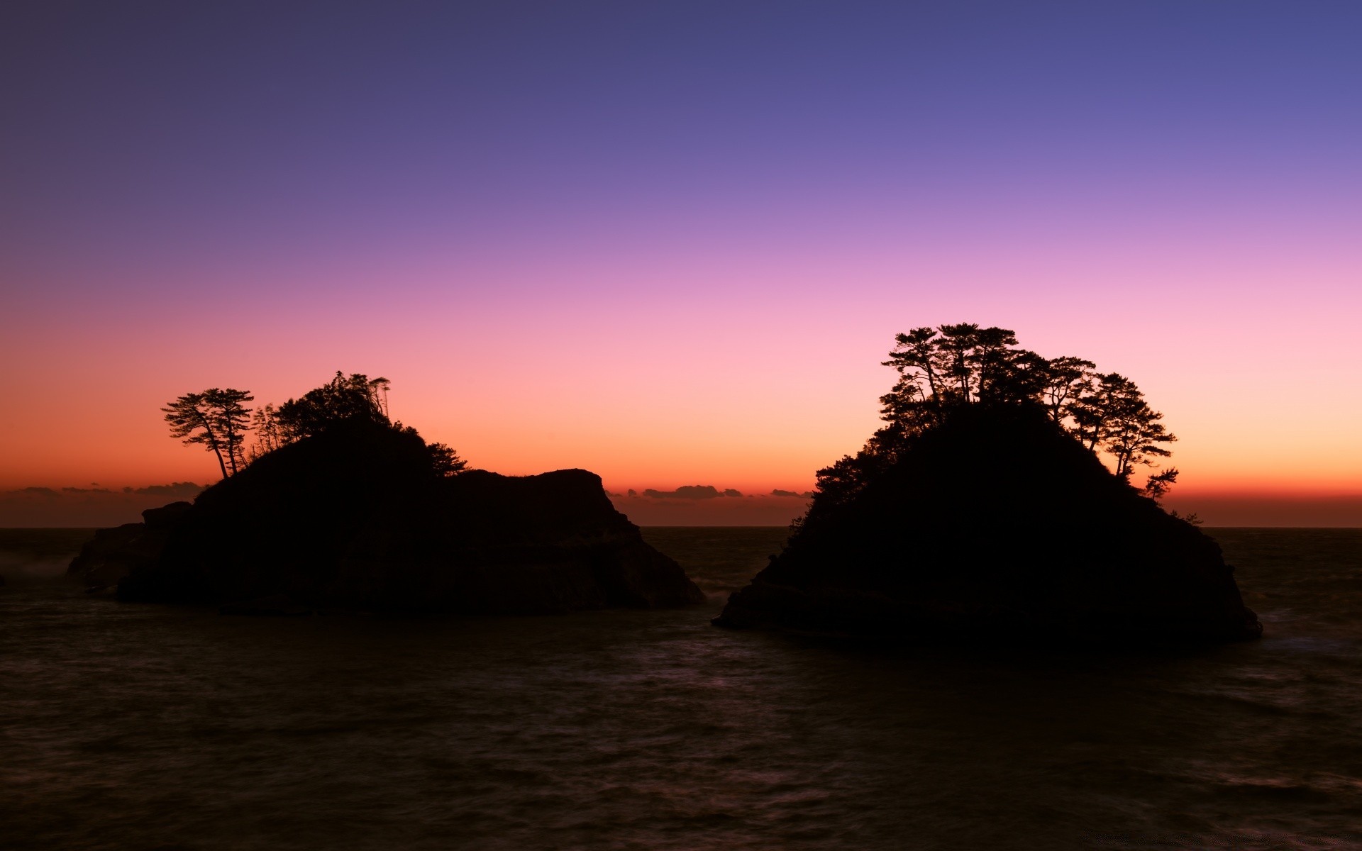 Puesta de sol vespertina. Cielo oscuro en el agua
