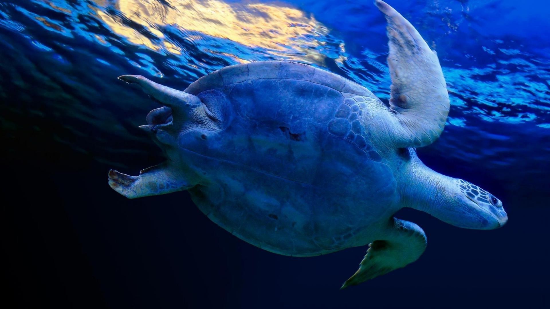 Tortuga Marina nadando en agua azul