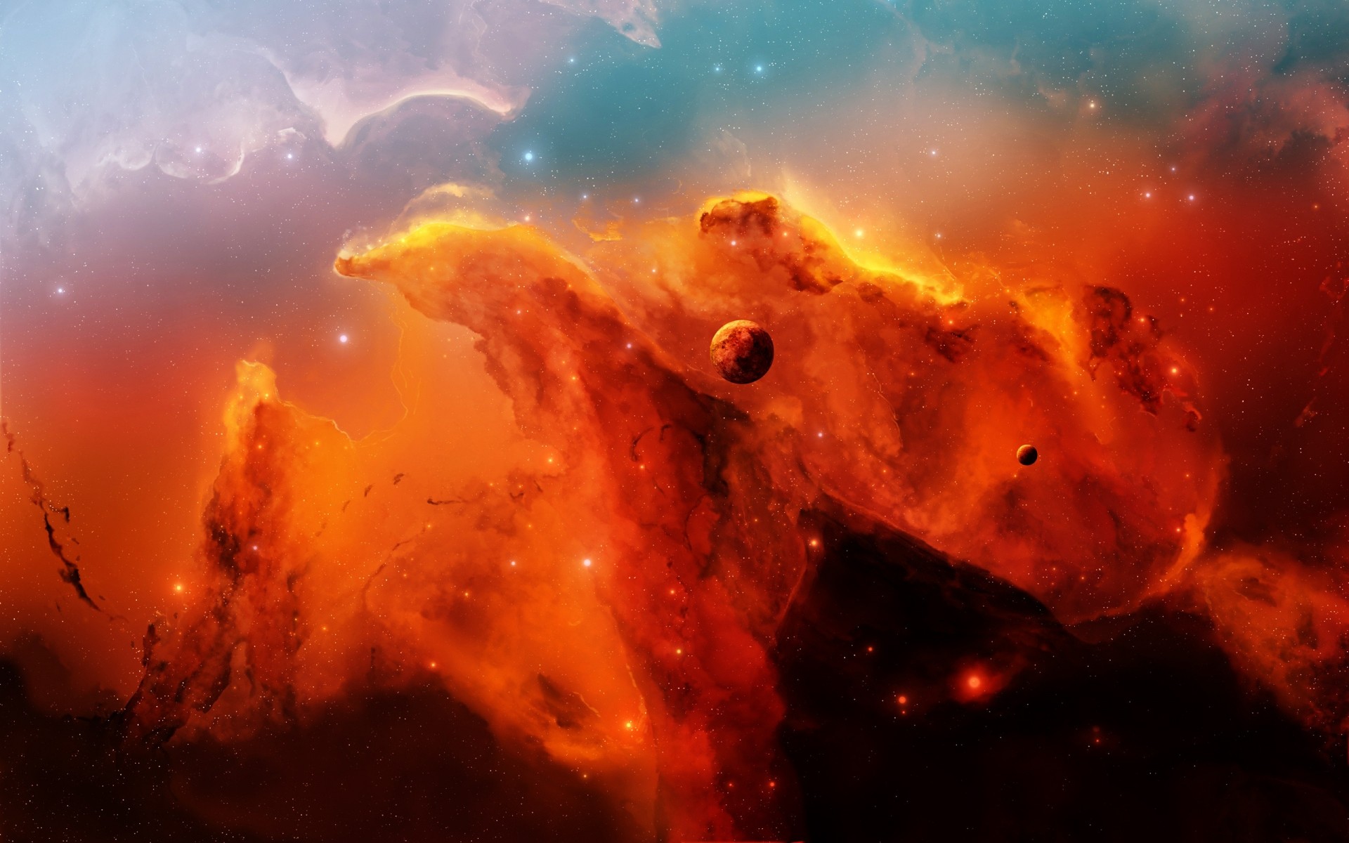 Planetas y estrellas en medio de espacios espacialesPlanetas y estrellas en medio de espacios espaciales