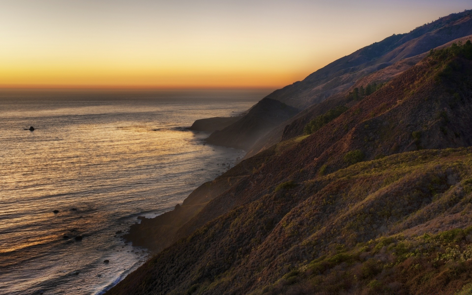 Hermosa puesta de sol en la playa en América