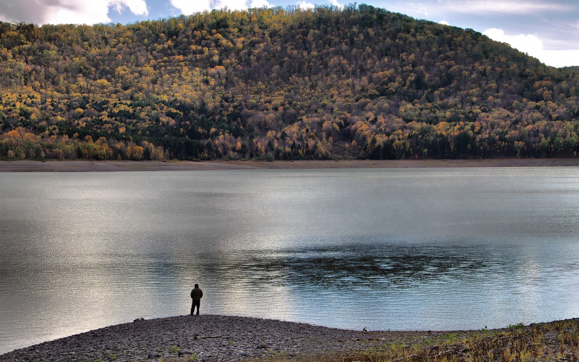 Un hombre solitario en una playa desierta