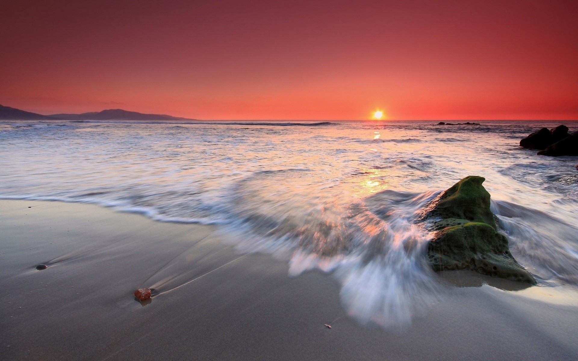 Una puesta de sol en la playa después de la cual vendrá el atardecer