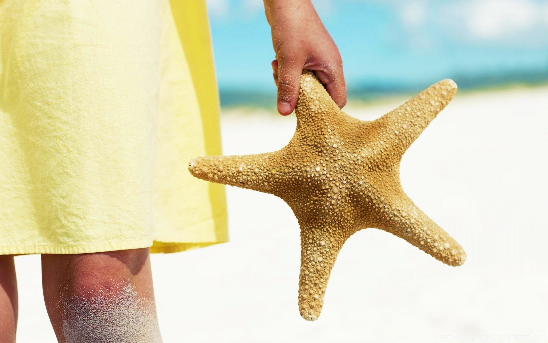 Chica con estrella de mar en la playa