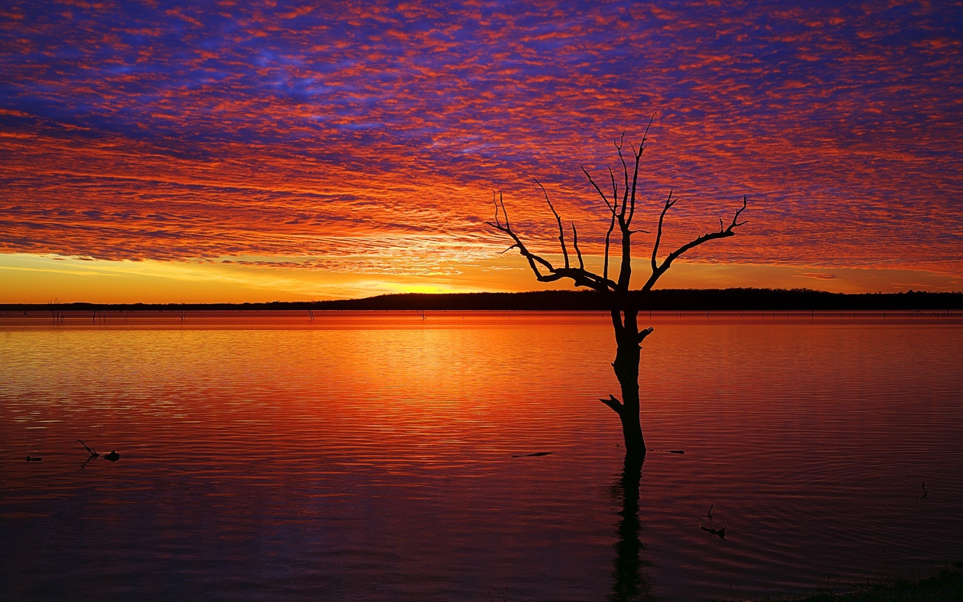 Árbol solitario entre el agua al atardecer
